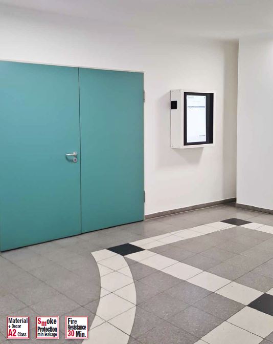 Montage 17x Feuerbeständiges Installationswandsystem PRIOWALL F90A mit feuerbeständiger nichtbrennbare Entrauchungsklappe für Abströmschächte von Rauchschutz-Druck-Anlagen (RDA) mit automatischer Öffnung im Brandfall - Westside-Tower Frankfurt (2015)